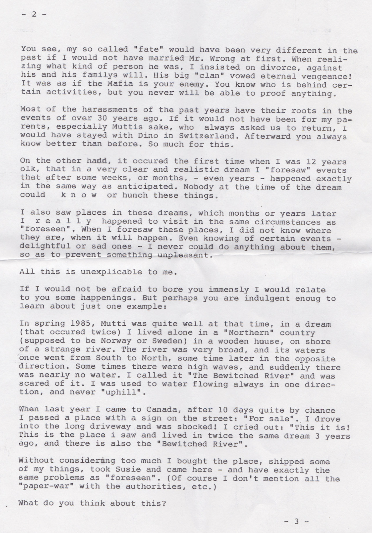 Dreams can be compelling, and Anna was apparently convinced. But perhaps there were other reasons to disappear into the middle of nowhere and start using fake names. Perhaps it had something to do with the problematic divorce from “Mr. Wrong” and harassment from his “clan” that she mentions in the letter. Perhaps it was more about hiding money and assets, like foreign property. It could certainly be both.