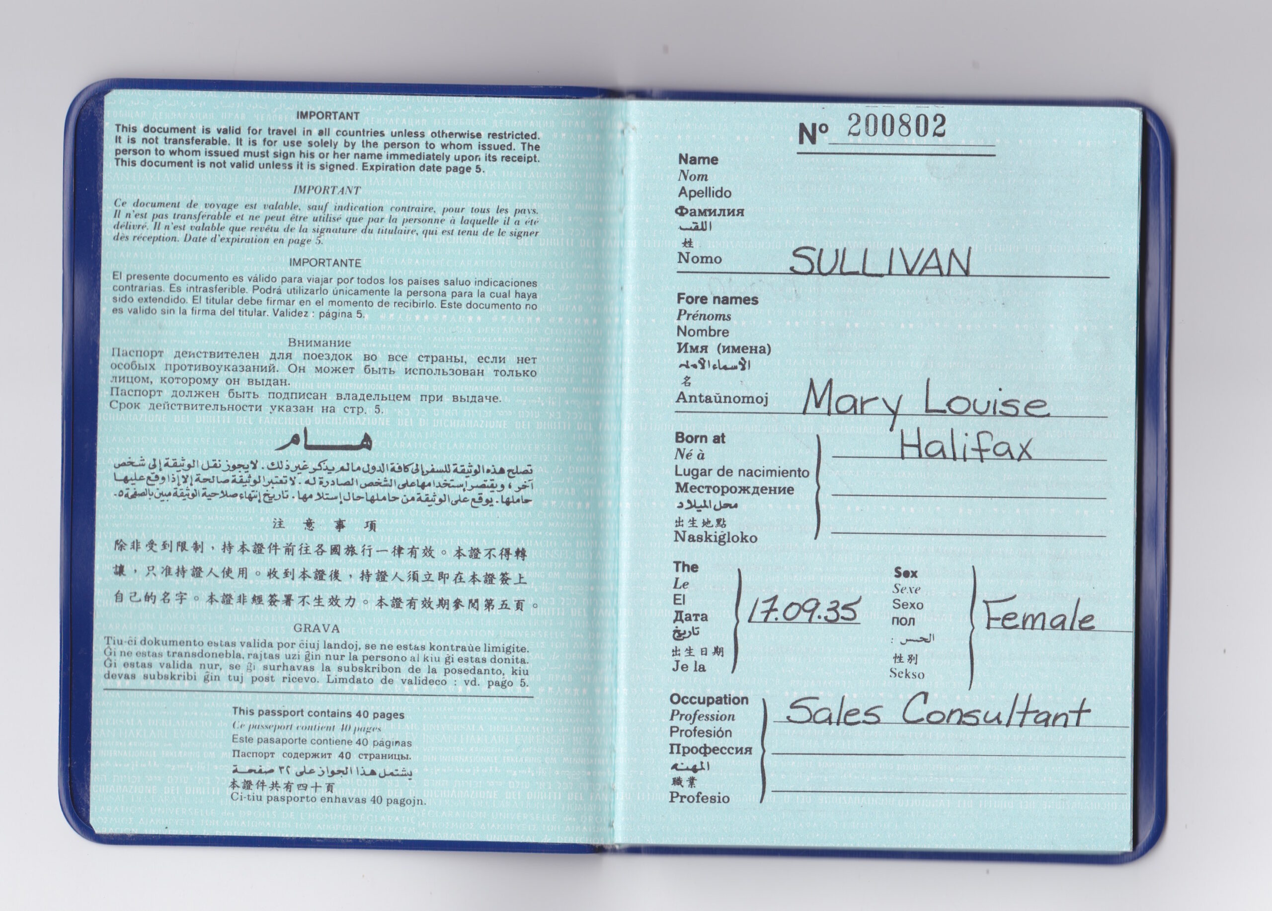 She had another passport—a considerably less realistic document than the Castellania Reisepass—issued by the World Service Authority in the name of Mary Louise Sullivan.